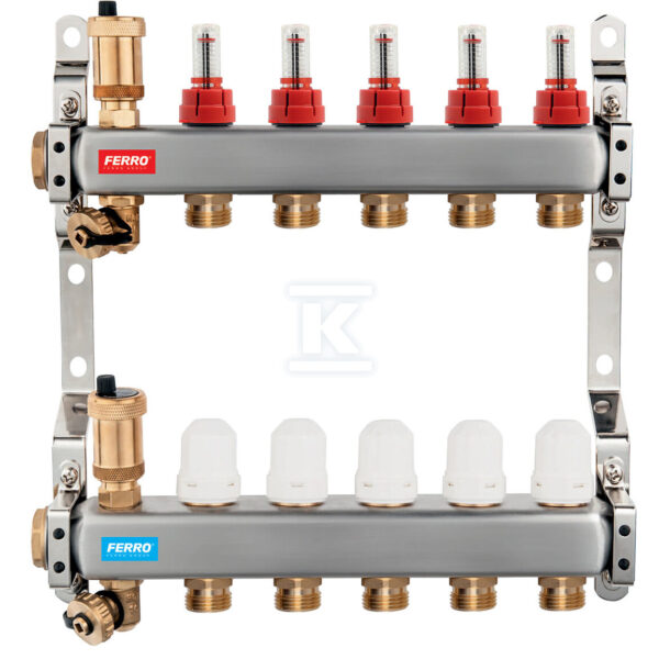 Rozdzielacz 9-drogowy z zaworami termostatycznymi i przepływomierzami, stal nierdzewna INOX o numerze katalogowym   SN-RZPU09S w kategorii Pozostałe systemy>Rozdzielacze pozostałe
