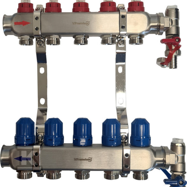 Rozdzielacz InoxFlow z układem mieszającym (seria USFP) – 5 obwodów o numerze katalogowym 1316157091 w kategorii Rozdzielacze KAN-therm, System KAN-therm.