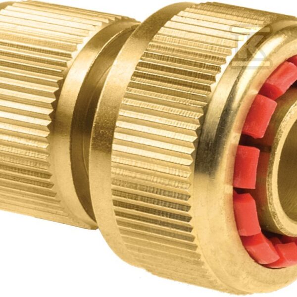 Szybkozłącze – przelot 1/2″ mosiądz BRASS /etykieta/ o numerze katalogowym  52-830 w kategorii Złączki mosiężne do węży ogrodowych, Węże ogrodowe