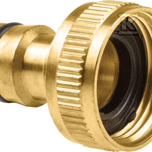 Szybkozłącze – stop 3/4″ mosiądz BRASS /etykieta/ o numerze katalogowym  52-825 w kategorii Złączki mosiężne do węży ogrodowych, Węże ogrodowe