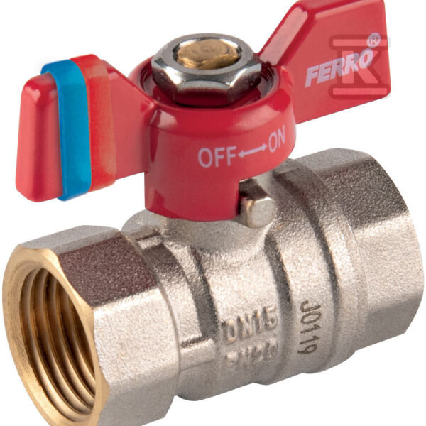 Kurek kulowy nakrętno-nakrętny z motylkiem, 1/2″, F-Comfort o numerze katalogowym KFCM1 w kategorii Zawory kulowe mosiężne wodne, Zawory kulowe. Produkt