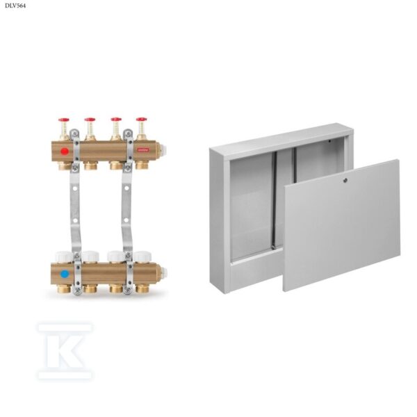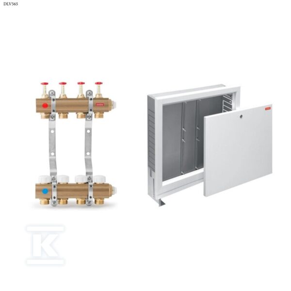 Rozdzielacz do ogrzewania podlogowego rozstaw belek 235mm, rotametr 3L plus szafka podtynkowa 335×575-665×110-170 zamykana na monetę-komplet o numerze katalogowym