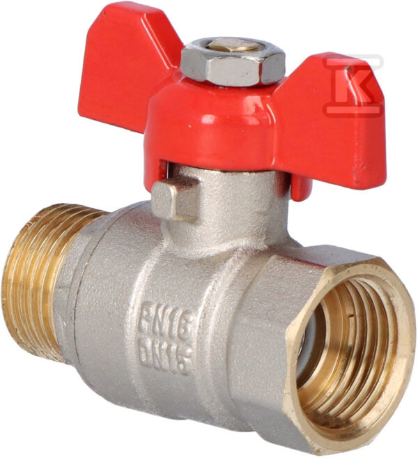 Zawór kulowy niklowany standard z dławikiem, PN16, 1/2″ PN16 z motylkiem, wersja N-N,16 bar/120C