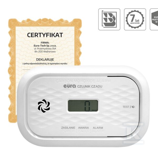 Czujnik czadu „EURA” CD-72A2v7300/B o numerze katalogowym   A21A456 w kategorii Czujniki p.poż.domowe>Czujniki tlenku węgla. Produkt wyprodukowany przez markę EURA-TECH,