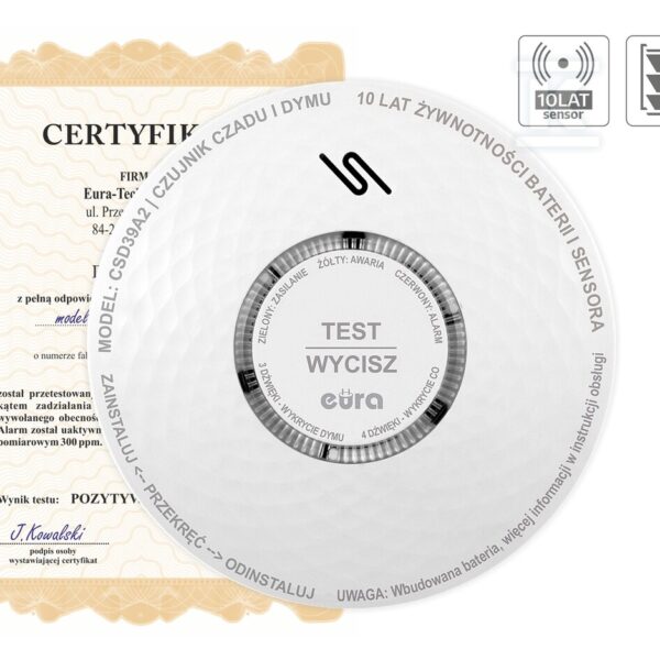 Czujnik czadu i dymu „EURA” CSD-39A2 o numerze katalogowym   A21A439 w kategorii Czujniki p.poż.domowe>Czujniki tlenku węgla. Produkt wyprodukowany przez