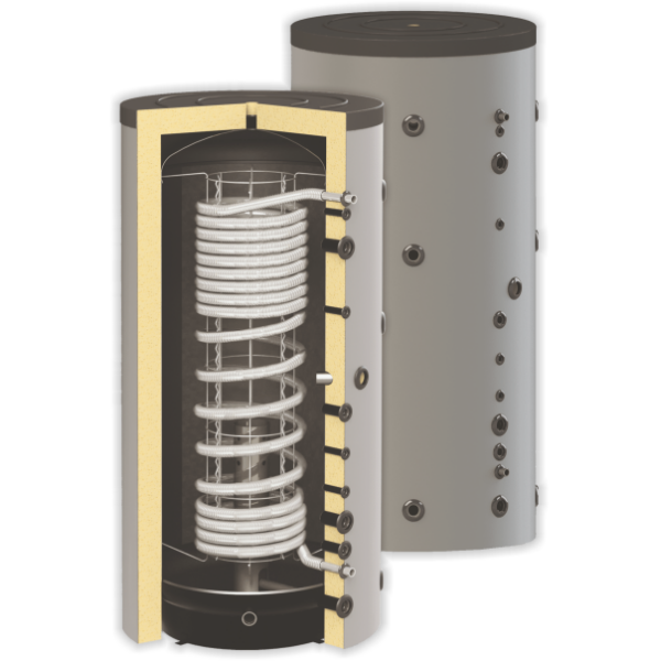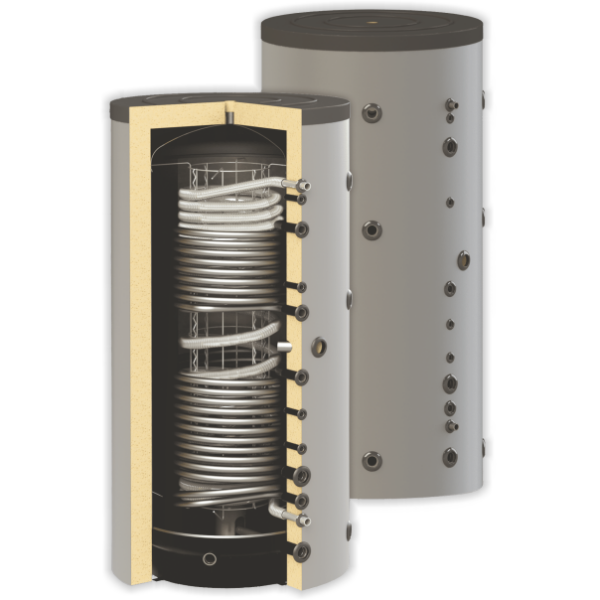 Zbiornik wykonany z stali węglowej, wężownica CWU wykonana jest z stali nierdzewnej, pozostałe wężownice z stali węglowej,