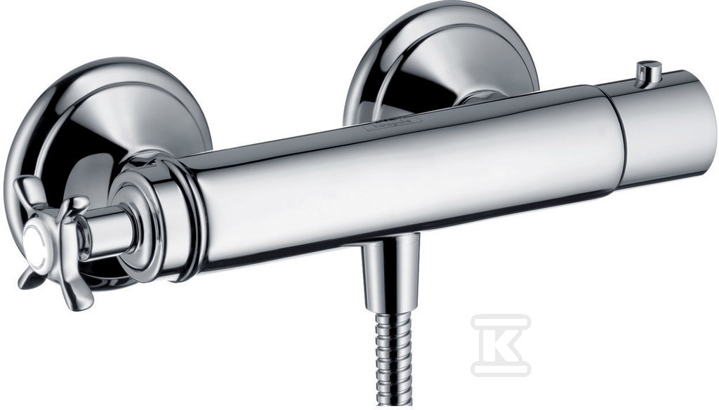 Bateria termostatowa Hansgrohe Axor Montreux DN15 z uchwytem krzyżowym do prysznica, montaż natynkowy – nikiel szczotkowany 16261820 o numerze katalogowym 16261820 w kategorii Baterie prysznicowe termostatyczne, Baterie łazienkowe. Produkt wyprodukowany przez markę HANSGROHE, seria AX MONTREUX.