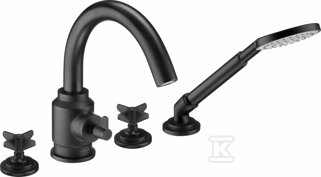Bateria wannowa 4-otworowa z zestawem prysznicowym Temisto, nero