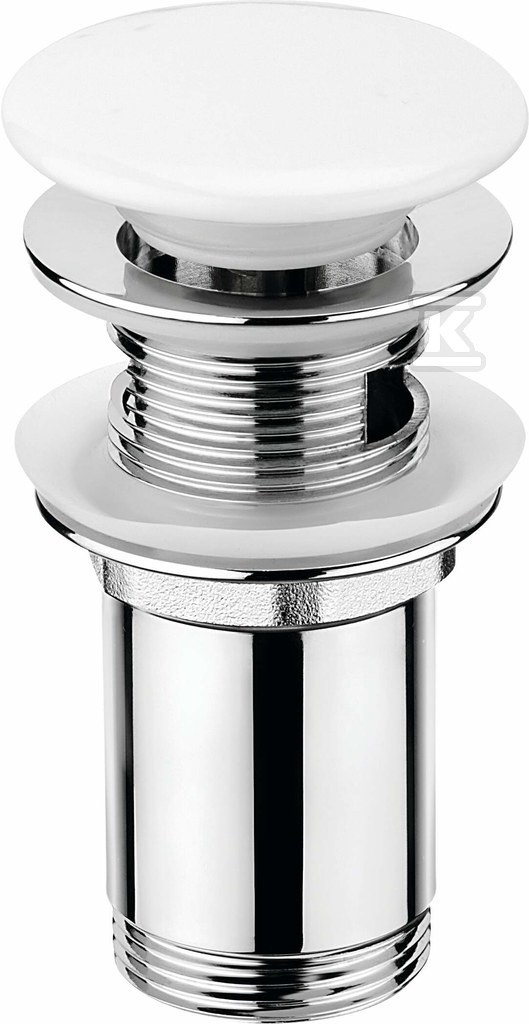 Korek do umywalki lub bidetu Click-Clack z tuleją – ceramiczny, biały, chrom o numerze katalogowym   NHC_C10U w kategorii Syfony, redukcje, złącza, rury przyłączeniowe itp.>Syfony umywalkowe i bidetowe. Produkt wyprodukowany przez markę DEANTE.