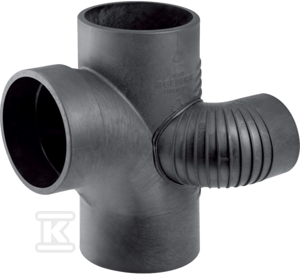 Czwórnik odsadzkowy PE Silent-db20 HT 110x110x75/88.5 lewy, dwupłaszczyznowy, sanitarny, do kanalizacji wewnętrznej niskoszumowej, kolor czarny o numerze katalogowym   310.172.14.1 w kategorii Kanalizacja wewnętrzna niskoszumowa>Kształtki do kanalizacji niskoszumowej. Produkt wyprodukowany przez markę GEBERIT, seria GEBERIT_SILENT-DB20.