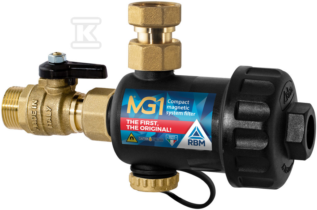 Filtr magnetyczny c.o. do montażu pod kotłem RBM MG1 3/4” czarny o numerze katalogowym 3.0700500 w kategorii Filtry magnetyczne, Filtry i uzdatniacze wody grzewczej. Produkt wyprodukowany przez markę RBM, seria FILTRY MAGNETYCZNE.