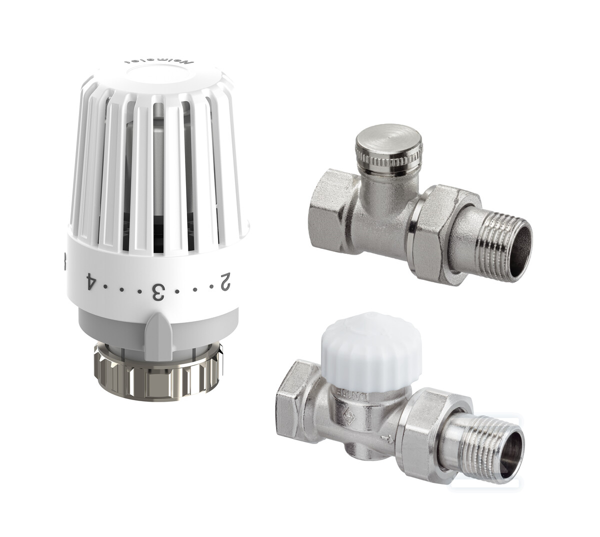 Głowica termostatyczna D biała, złącze M30x1.5, temp. 16 – 28°C oraz zawór termostatyczny prosty Calypso exact DN 15, z bezstopniową nastawą wstępną od 1 do 8 oraz grzejnikowy zawór odcinający Raditec DN15 prosty o numerze katalogowym   DMK865 w kategorii Głowice termostatyczne i zawory>Głowice termostatyczne tradycyjne. Produkt wyprodukowany przez markę IMI HEIMEIER, seria D.