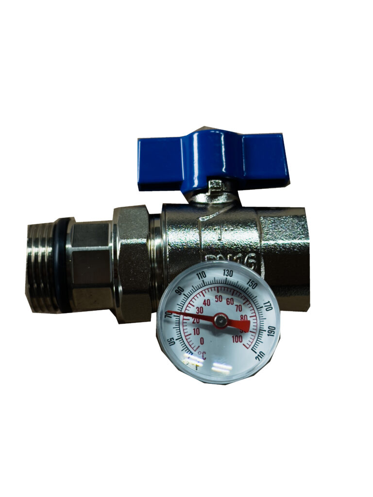 Zestaw- Zawór z termometrem i półśrubunkiem prosty 1″