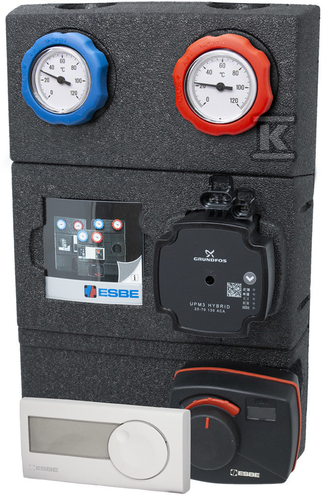 Grupa pompowa z zaworem mieszającym i siłownikiem ESBE GRC221 CRC217+VRG432-25-WILO o numerze katalogowym 61044100 w kategorii Grupy pompowe, Grupy pompowe grzewcze. Produkt wyprodukowany przez markę ESBE.