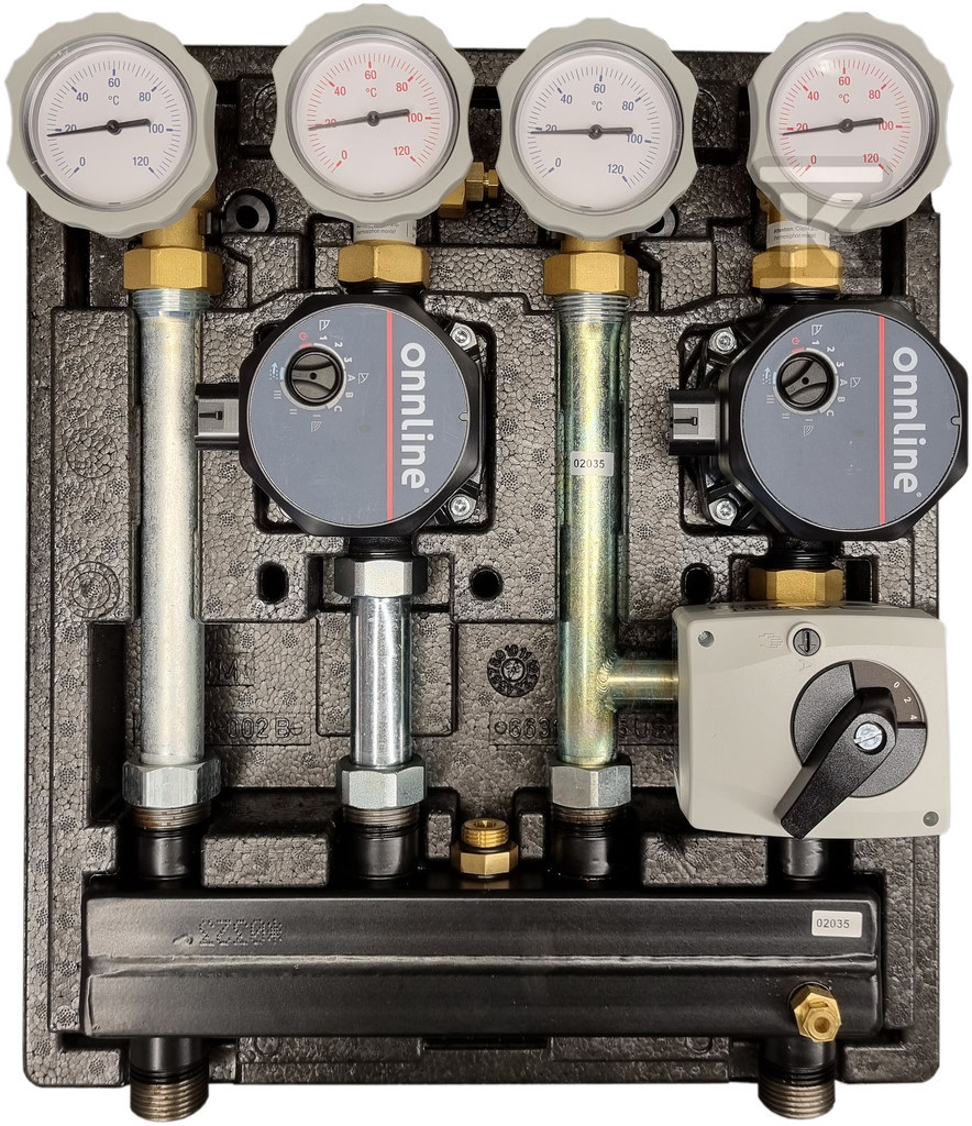 Grupa pompowa KOMBIMIX -ONNLINE dla 2 obwodów: 1 z mieszaczem i 1 obwód bez mieszacza o numerze katalogowym M26102.3PL w kategorii Grupy pompowe, Grupy pompowe grzewcze. Produkt wyprodukowany przez markę ONNLINE, seria KOMBIMIX.