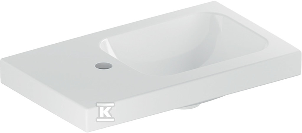 Umywalka iCon Light kompaktowa, B53 cm, H13 cm, T31 cm, bez przelewu, z otworem na baterię po lewej stronie, z powierzchnią odkładczą po lewej stronie, biały, KeraTect o numerze katalogowym 501.833.00.2 w kategorii Umywalki ceramiczne, Ceramika. Produkt wyprodukowany przez markę GEBERIT, seria ICON.