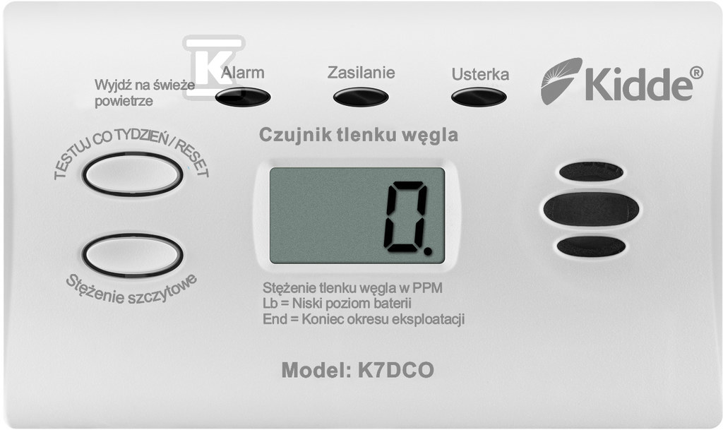 Czujnik czadu z wyświetlaczem Kidde K7DCO o numerze katalogowym KID-K7DCO w kategorii Czujniki tlenku węgla, Czujniki p.poż.domowe. Produkt wyprodukowany przez markę KIDDE, seria 7.