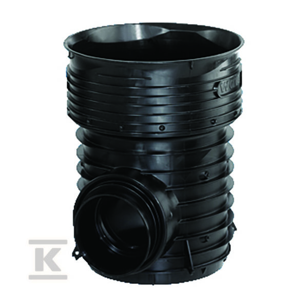 Kineta PP 600×200 dopływ 90/270st. typ1 przelotowa, do rury wznoszącej korugowanej DN/ID 600mm oraz rury wlotowej gładkiej 200mm, z uszczelką, kolor pomarańczowy (Diamir 600) o numerze katalogowym 2581136300 w kategorii Kinety przepływowe, Kinety. Produkt wyprodukowany przez markę KACZMAREK, seria Diamir DN/ID 600 (korugowana).