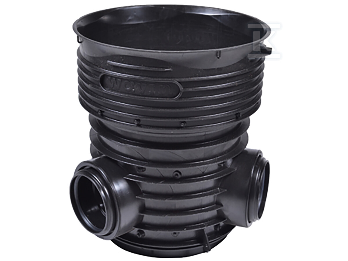 Kineta PP 425×200 przelotowa 60st. typ J (kątowa), do rury wznoszącej korugowanej 425mm oraz rury wlotowej gładkiej 200mm, z uszczelką, kolor czarny (Tegra 425) o numerze katalogowym 3011346 w kategorii Kinety przepływowe, Kinety. Produkt wyprodukowany przez markę WAVIN, seria TEGRA DN/ID 425 (KORUGOWANA).