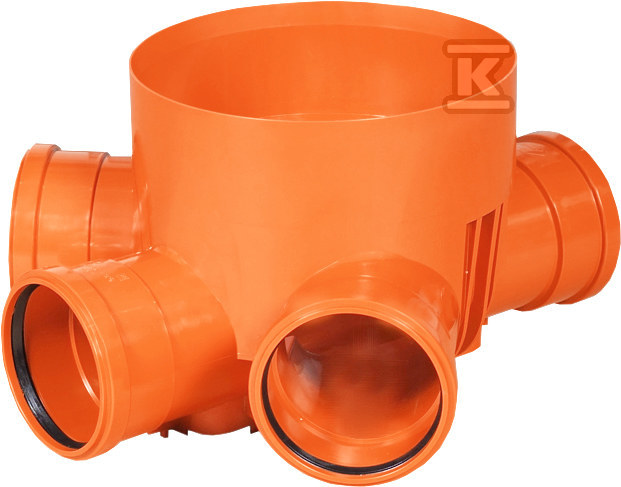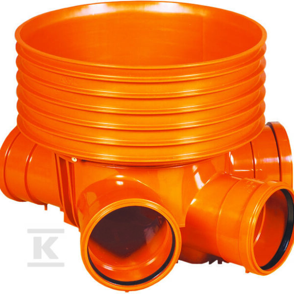 Kineta PP 315×200, typ2 zbiorcza, do rury wznoszącej karbowanej 315mm oraz rury wlotowej gładkiej 200mm, z uszczelką, kolor pomarańczowy (Diamir 315) o numerze katalogowym 2532133300 w kategorii Kinety zbiorcze, Kinety. Produkt wyprodukowany przez markę KACZMAREK, seria Diamir DN/ID 315 (korugowana).