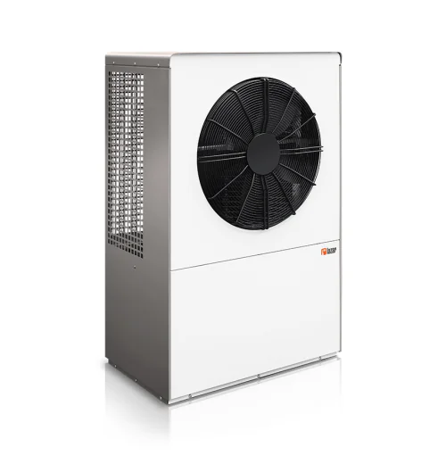 Stalowy kocioł na pellety, z automatycznie czyszczonymi palnikiem i wymiennikiem ciepła, zapalarką, o sprawności powyżej 91,2 % oraz mocy 11 kW. |