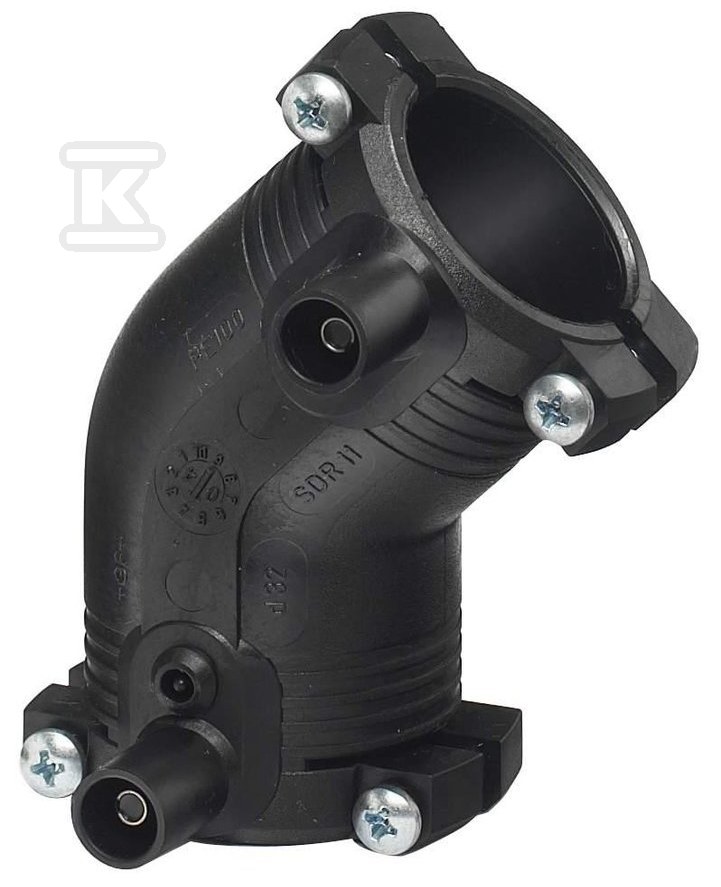Kolano elektrooporowe 45ST. DN40 PE100, SDR11, PN10 gaz/PN16 woda o numerze katalogowym 753151609 w kategorii Kształtki elektrooporowe do rur PE wodociągowych, Kształtki do rur PE. Produkt wyprodukowany przez markę GEORG FISCHER, seria elektrooporowe.