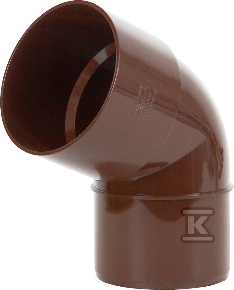 Kolano 75×75/67 dwukielichowe, Kanion PVC brąz o numerze katalogowym 3021500 w kategorii Kolana rynnowe tworzywowe, Rynny tworzywowe. Produkt wyprodukowany przez markę WAVIN, seria Kanion PVC (Wavin) 100 brąz.