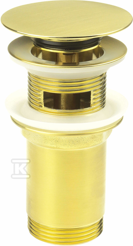 Korek do umywalki lub bidetu z tuleją – uniwersalny Click-Clack, złoto szczotkowane o numerze katalogowym   NHC_R10U w kategorii Syfony, redukcje, złącza, rury przyłączeniowe itp.>Syfony umywalkowe i bidetowe. Produkt wyprodukowany przez markę DEANTE, seria CLICK-CLACK.