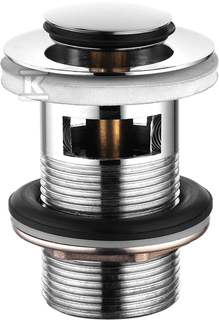 Korek klik klak mały okrągły z przelewem, chrom o numerze katalogowym   CKK_01R1 w kategorii Syfony, redukcje, złącza, rury przyłączeniowe itp.>Syfony umywalkowe i bidetowe. Produkt wyprodukowany przez markę KUCHINOX, seria KLIK KLAK.