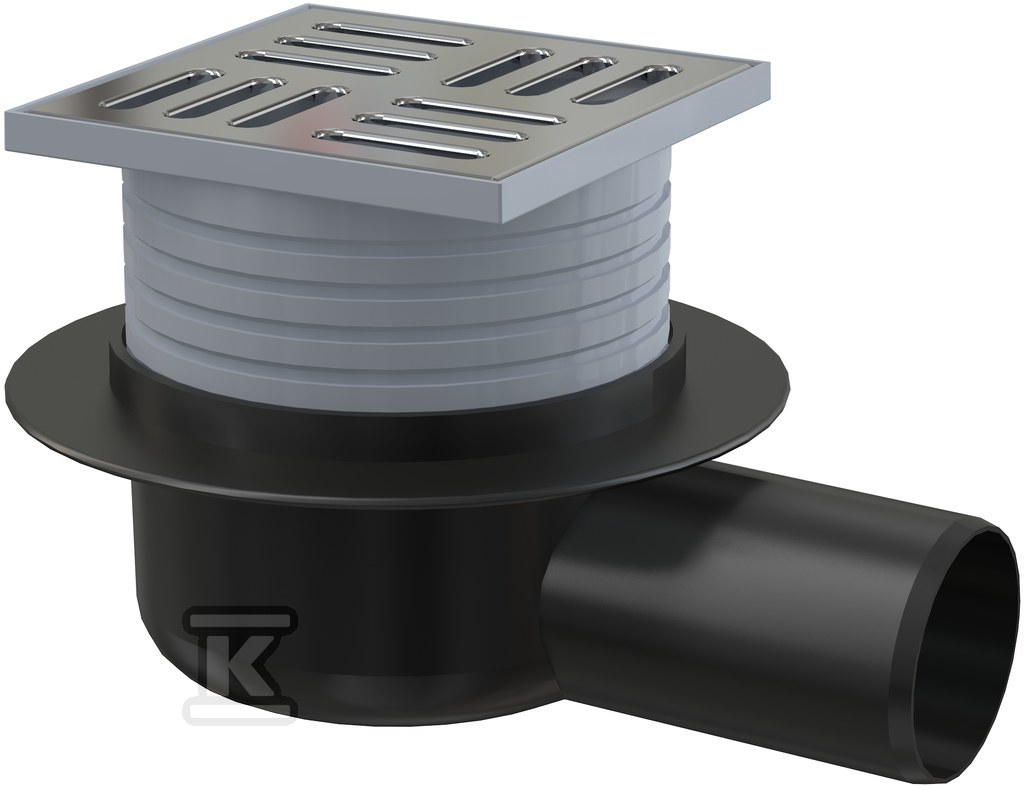 Kratka ściekowa 105×105/50 mm odpływ boczny, kratka nierdzewna, syfon mokry o numerze katalogowym APV26 w kategorii Kratki ściekowe/wpusty brodzikowe, Odwodnienia. Produkt wyprodukowany przez markę ALCADRAIN.