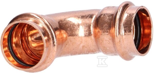 Łuk jednokielichowy, 45° 15 CU B Press o numerze katalogowym P5040 01500000 w kategorii Łączniki miedziane zaprasowywane do wody, Łączniki zaprasowywane miedziane. Produkt wyprodukowany przez markę CONEX, seria B PRESS.