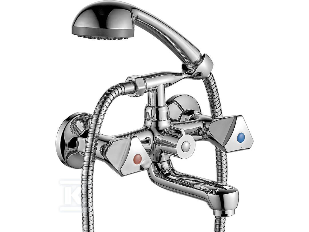 Bateria wannowa NORM ścienna z zestawem natryskowym o numerze katalogowym   BQN_011D w kategorii Baterie łazienkowe>Baterie wannowe. Produkt wyprodukowany przez markę KUCHINOX, seria NORM.
