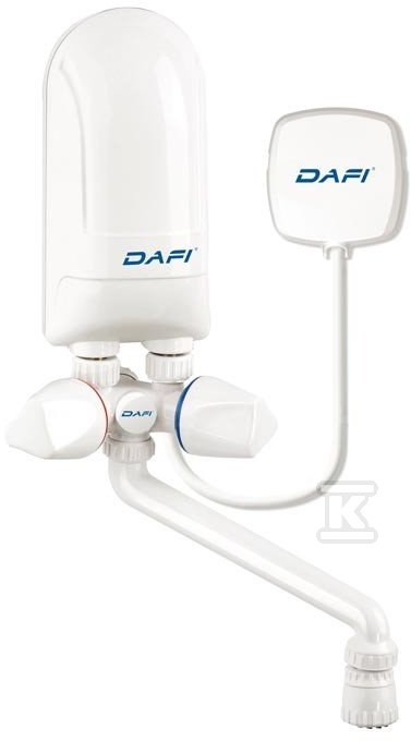 Przepływowy ogrzewacz wody Dafi 5,5 kW z baterią białą 230 V o numerze katalogowym O.OG.1.0.0.0.5.5.BAT.BIA w kategorii Przepływowe ogrzewacze wody, Ogrzewacze wody elektryczne. Produkt wyprodukowany przez markę DAFI, seria DAFI.