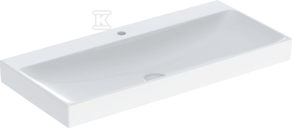Umywalka One odpływ pionowy, B105 cm, T48 cm, z otworem na baterię, bez przelewu, KeraTect o numerze katalogowym 505.020.01.4 w kategorii Umywalki ceramiczne, Ceramika. Produkt wyprodukowany przez markę GEBERIT, seria ONE.
