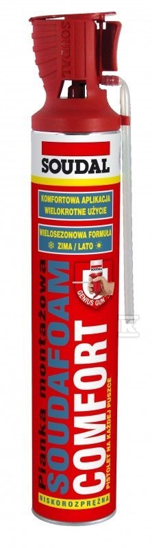 Piana montażowa soudafoam comfort 750ml z aplikatorem Genius Gun o numerze katalogowym 122493 w kategorii Pianki inne, Pianki. Produkt wyprodukowany przez markę SOUDAL.