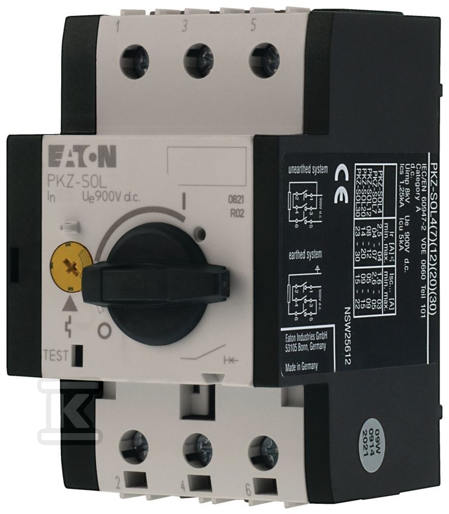 Wyłącznik stringu PV 12A DC PKZ-SOL12 o numerze katalogowym 120937 w kategorii Rozłączniki, wyłączniki DC, Zabezpieczenie instalacji. Produkt wyprodukowany przez markę EATON.
