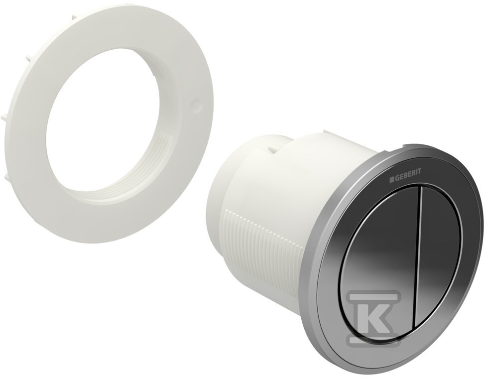 Przycisk spłukujący pneumatyczny WC Typ 10, ręczny, meblowy dwudzielny, chrom mat-chrom o numerze katalogowym 116.057.SN.1 w kategorii Płytki uruchamiające, przyciski do stelaży podtynkowych, Stelaże podtynkowe. Produkt wyprodukowany przez markę GEBERIT.