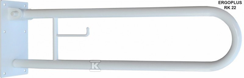 Poręcz podnoszona Ergoplus 60 cm do WC z uchwytem na papier toaletowy, malowana proszkowo, biała o numerze katalogowym RK22 w kategorii Dostępna łazienka, poręcze dla niepełnosprawnych, Akcesoria łazienkowe. Produkt wyprodukowany przez markę EKOTECH, seria CLASSIC.