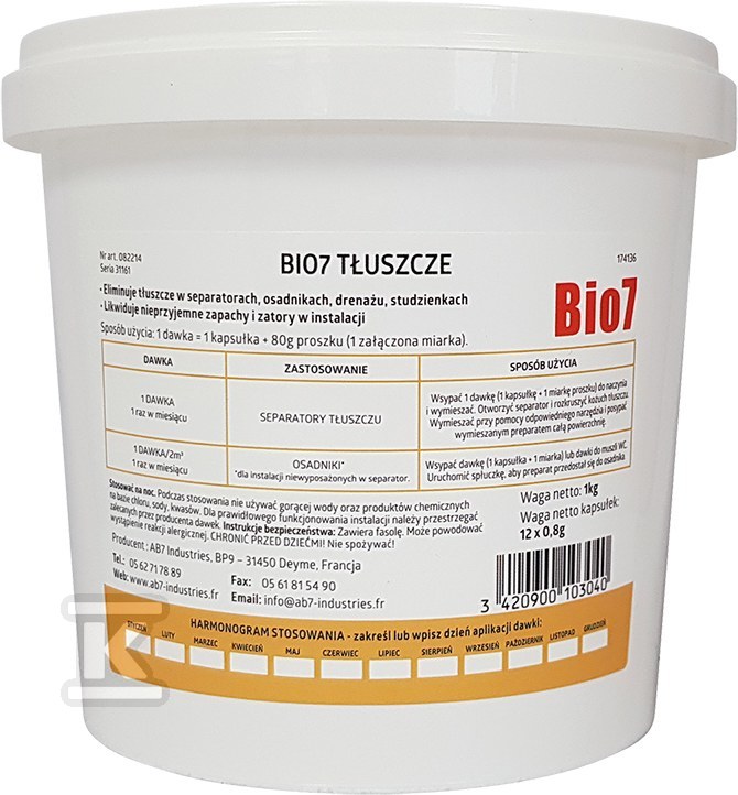 Preparat BIO7 TŁUSZCZE EKSPLOATACJA 1KG do osadników i separatorów tłuszczu o numerze katalogowym BIO7-31973 w kategorii Biopreparaty, Przydomowe oczyszczalnie ścieków. Produkt wyprodukowany przez markę GRAF, seria BIO7.