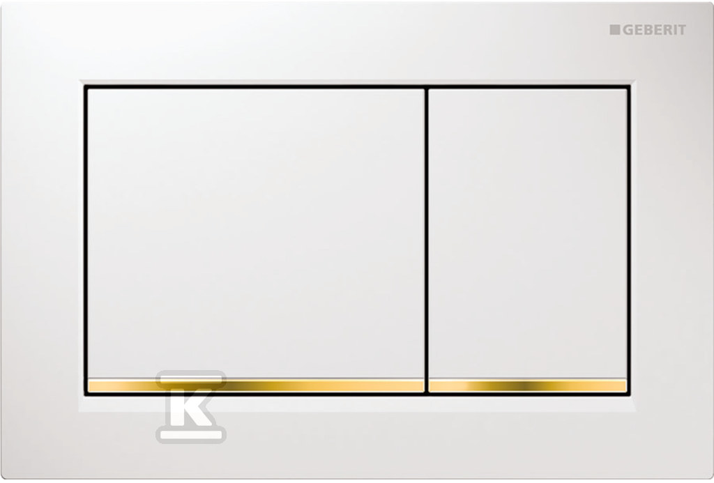 Przycisk spłukujący Omega30, przedni / górny, biały-złoty-biały o numerze katalogowym 115.080.KK.1 w kategorii Płytki uruchamiające, przyciski do stelaży podtynkowych, Stelaże podtynkowe. Produkt wyprodukowany przez markę GEBERIT, seria OMEGA 30.
