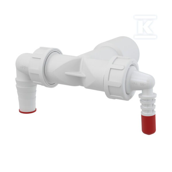Komplet przyłączeniowy podwójny dla podłączenia dwóch urządzeń, pasujący do korpusu syfonu HL4000.0 o numerze katalogowym HL4000.2 w kategorii Węże i syfony do pralki oraz zmywarki, Wyposażenie łazienki. Produkt wyprodukowany przez markę HL.