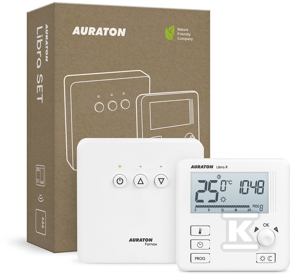 AURATON Libra SET – Tygodniowy, bezprzewodowy regulator temperatury ze sterownikiem urządzenia grzewczego (zestaw), (następca modelu 3021RT) o numerze katalogowym AUR00LBR0SE00 w kategorii Regulatory programowalne, Regulatory temperatury. Produkt wyprodukowany przez markę AURATON, seria EKO.