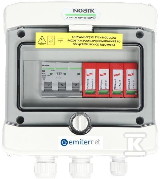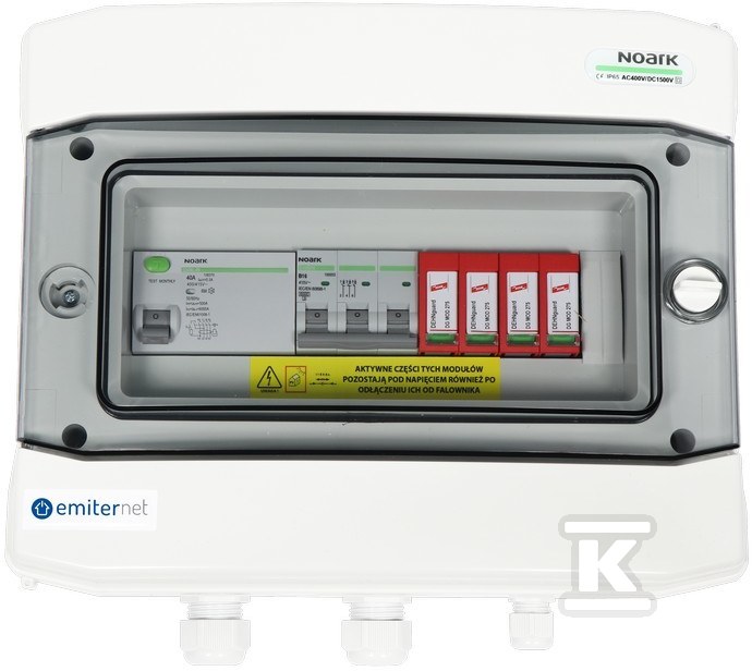 Rozdzielnica hermetyczna EMITER z ogranicznikiem przepięć AC typ 2, B16A 3F, różnic 40A/300mA o numerze katalogowym EM-268_AC w kategorii Obudowy, Zabezpieczenie instalacji. Produkt wyprodukowany przez markę EMITER, seria ZABEZPIECZENIE INSTALACJI.