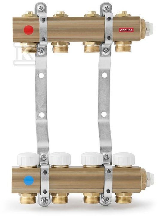 Rozdzielacz ONNLINE do ogrzewania podłogowego z zaworami regulacyjnymi i zaworami do siłowników gwint M30 – 11 obiegów o numerze katalogowym 1327179076 w kategorii Rozdzielacze Onnline, System Onnline. Produkt wyprodukowany przez markę ONNLINE, seria OP.