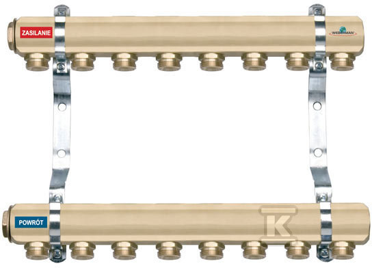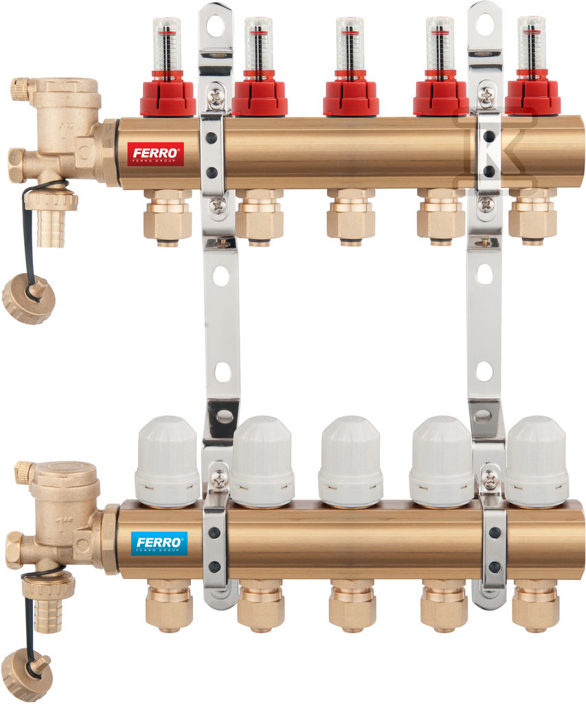 Rozdzielacz 8-drogowy z zaworami termostatycznymi i przepływomierzami, standard o numerze katalogowym N-RZP08S w kategorii Rozdzielacze pozostałe systemy, Pozostałe systemy. Produkt wyprodukowany przez markę FERRO, seria ROZDZIELACZE MOSIĘŻNE.
