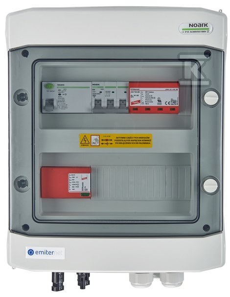Rozdzielnica przyłączeniowa DCAC hermetyczna IP65 EMITER z ogranicznikiem przepięć DC Dehn 1000V typu 1+2, 1 x łańcuch PV, 1 x MPPT // ogr. AC Dehn typ 1+2, 10A 3-F, RCD typ A 40A/300mA o numerze katalogowym   EM-1101_DCAC w kategorii Zabezpieczenie instalacji>Obudowy. Produkt wyprodukowany przez markę EMITER.