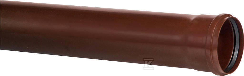 Rura spustowa PVC 110×1000 kielichowa dołączeniowa do kanalizacji, kolor brązowy RAL8017, system rynnowy „Karolina” o numerze katalogowym 4942014100 w kategorii Rury spustowe tworzywowe, Rynny tworzywowe. Produkt wyprodukowany przez markę KACZMAREK, seria k.brązowy, 125×100 lub 150×100.