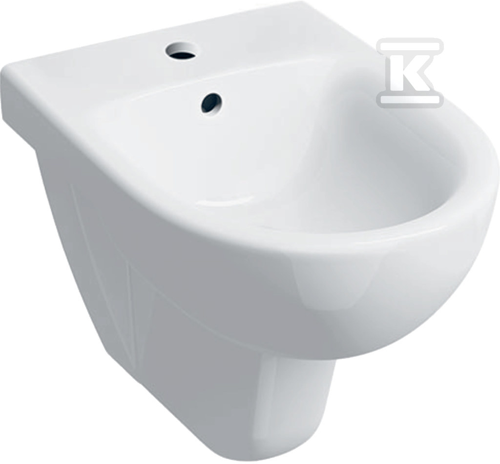 Bidet wiszący Selnova B35 cm, H34.5 cm, T53 cm, z przelewem, z otworem na baterię o numerze katalogowym 500.264.01.7 w kategorii Bidety wiszące, Ceramika. Produkt wyprodukowany przez markę GEBERIT, seria SELNOVA.