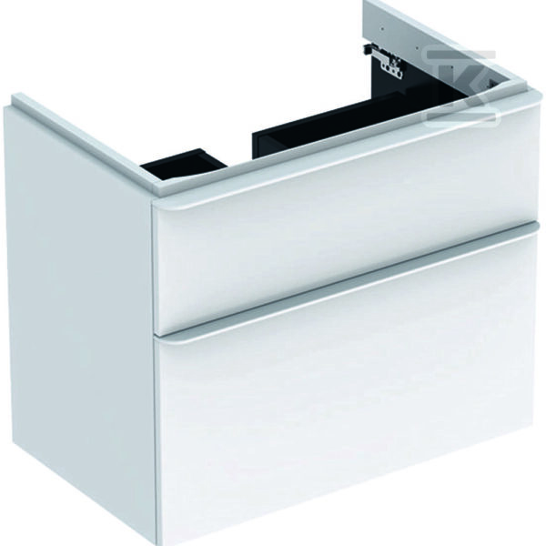 Zestaw szafki Selnova Square pod umywalkę, z dwiema szufladami, B60 cm, H65.2 cm, T50.2 cm, biały, z umywalką meblową, cienki rant, z przelewem, z otworem na baterię o numerze katalogowym 501.236.00.1 w kategorii Szafki podumywalkowe, Meble łazienkowe. Produkt wyprodukowany przez markę GEBERIT, seria SELNOVA.