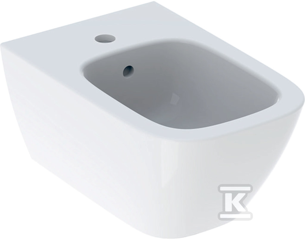 Bidet wiszący Smyle Square B35 cm, H26 cm, T54 cm, z przelewem, z otworem na baterię o numerze katalogowym 500.209.01.1 w kategorii Bidety wiszące, Ceramika. Produkt wyprodukowany przez markę GEBERIT, seria SMYLE.